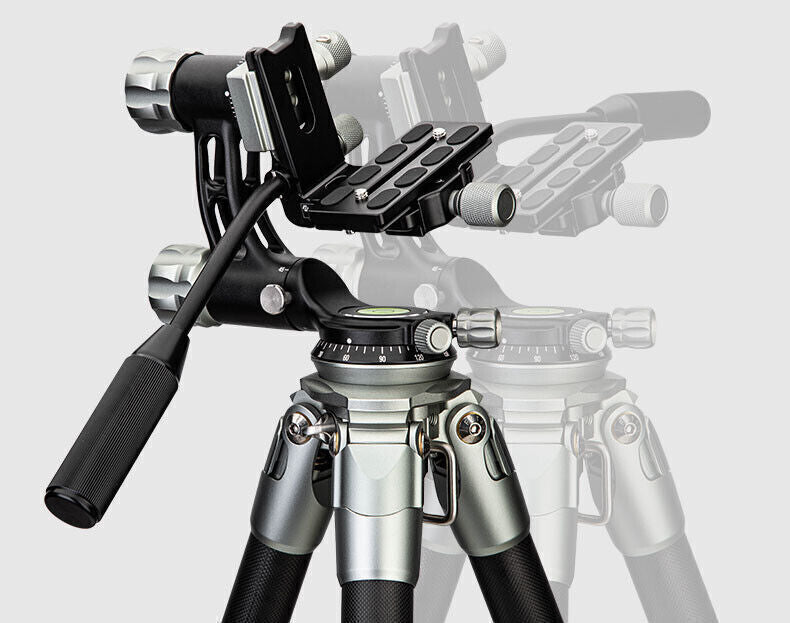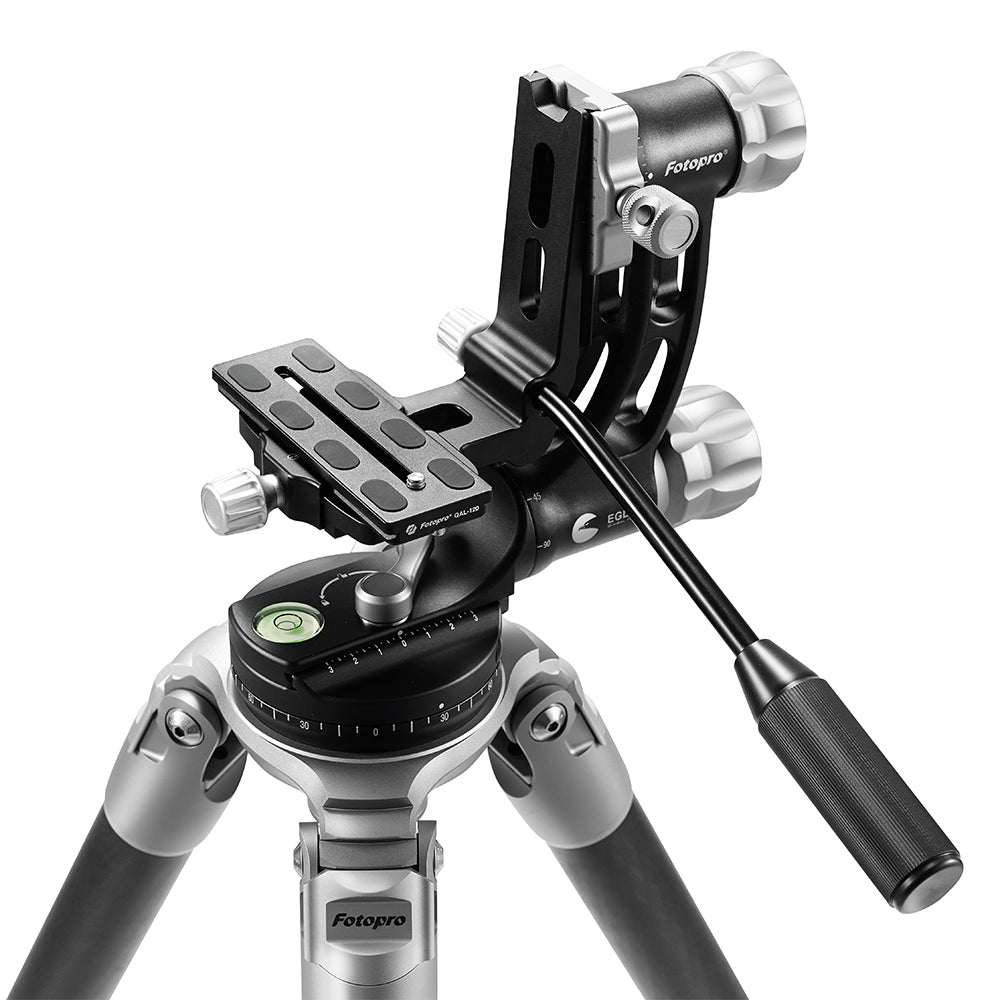 The Fotopro Gimbal Head can 360 degrees up and down — no blind angles in all directions. The outstanding new head features both modern design and innovative solutions, and guarantees perfect balance, even with heavy equipment.